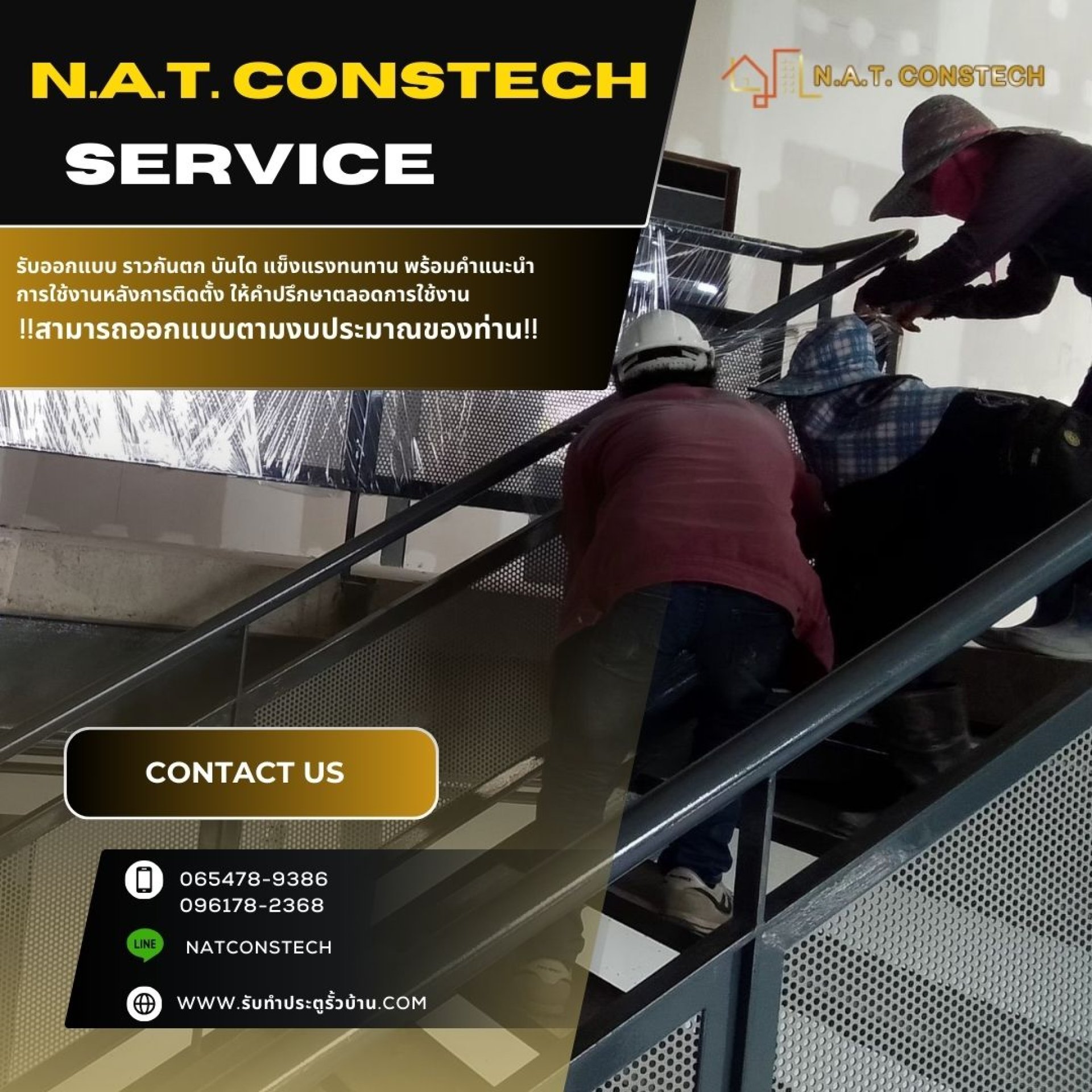 N.A.T. CONSTECH รับสั่งทำราวบันได รับสั่งทำราวกันตก ยินดีให้คำปรึกษาจากทีช่างผู้ชำนาญเฉพาะ สอบถามรายละเอียด